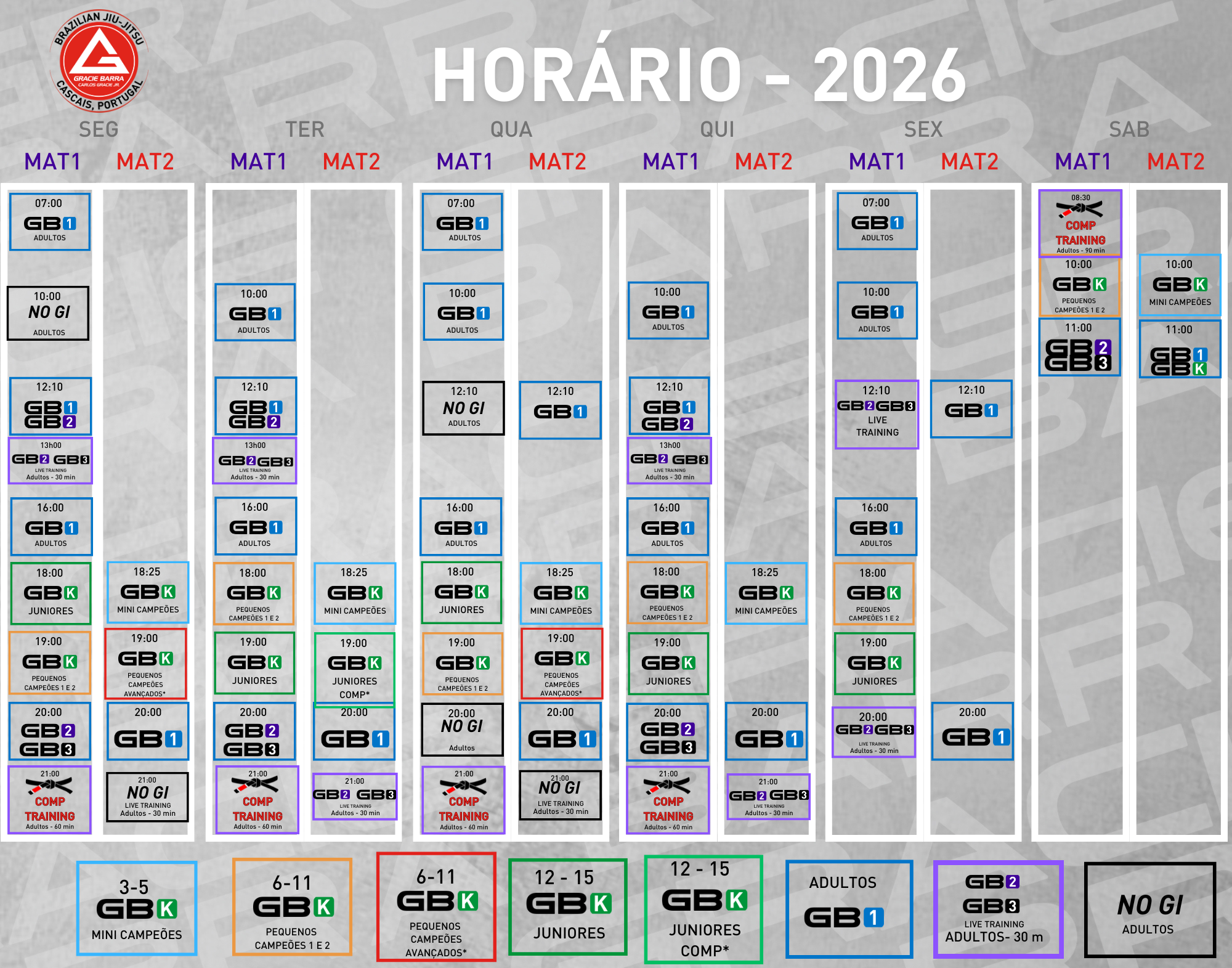 Sabemos que os dias passam a voar. Por isso, na Gracie Barra Cascais temos horários abrangentes de aulas para que qualquer pessoa possa praticar esta arte marcial.